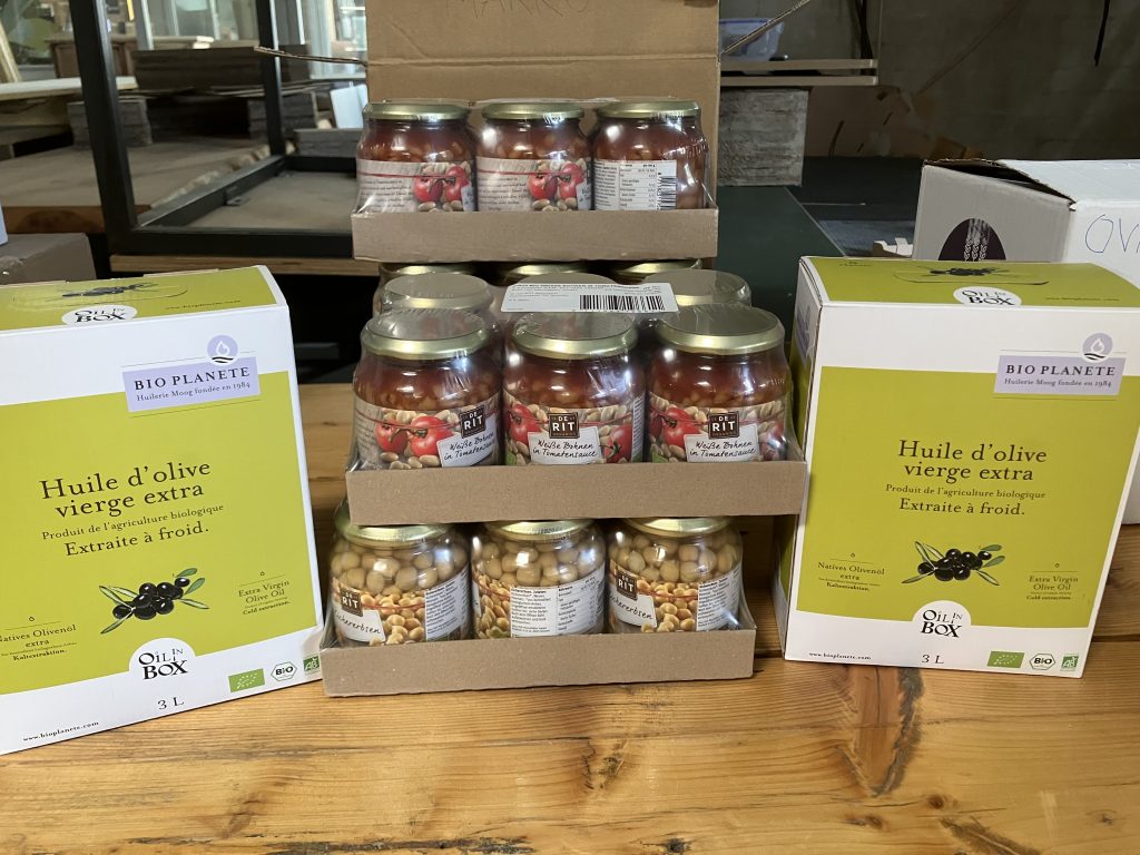Am 7.8.2025 war es endlich so weit: Der LKW des Großhandels Landlinie rollte an und lieferte wichtige Grundnahrungsmittel – darunter einen 12-kg-Eimer Salz. Fast alles kam in nachhaltigen Papier- oder Glasverpackungen sowie in XXL-Gebinden. Einige Gebinde wurden von Einzelpersonen übernommen, andere Produkte hingegen von mehreren Mitgliedern gemeinsam bestellt und geteilt. Großpackungen wie die 1-kg-Chiliflocken wurden
