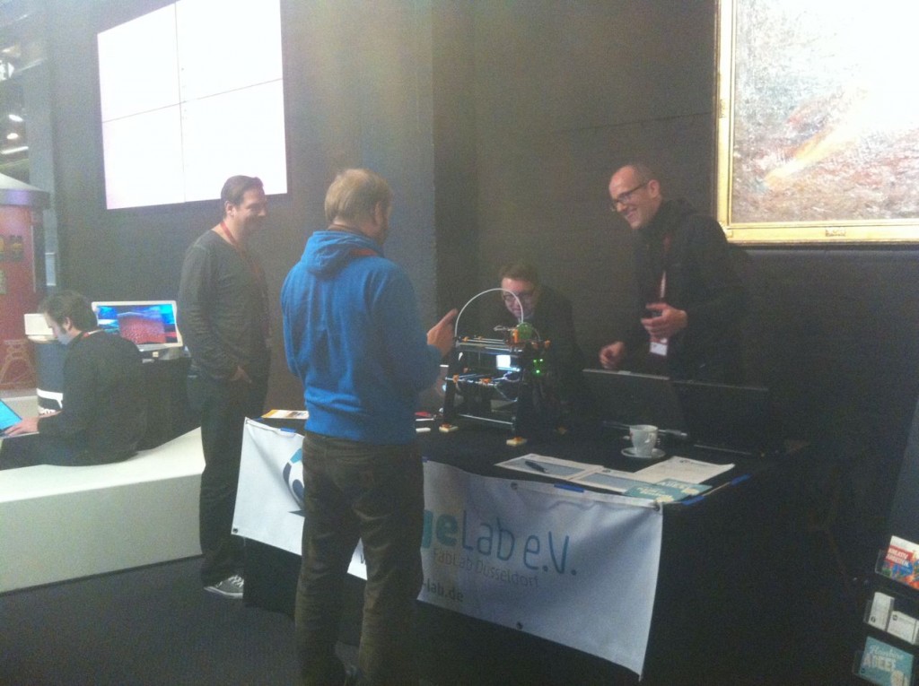 Das GarageLab ist auf Tour gegangen um unsere Ideen und Technologien einem breiteren und neuem Publikum vorzustellen. Und die Resonanz war beeindruckend. 300 Teilnehmer der Beyond Tellerrand 2012 konnten in den Vortragspausen im Vorraum des Capitol einen ersten Eindruck gewinnen.