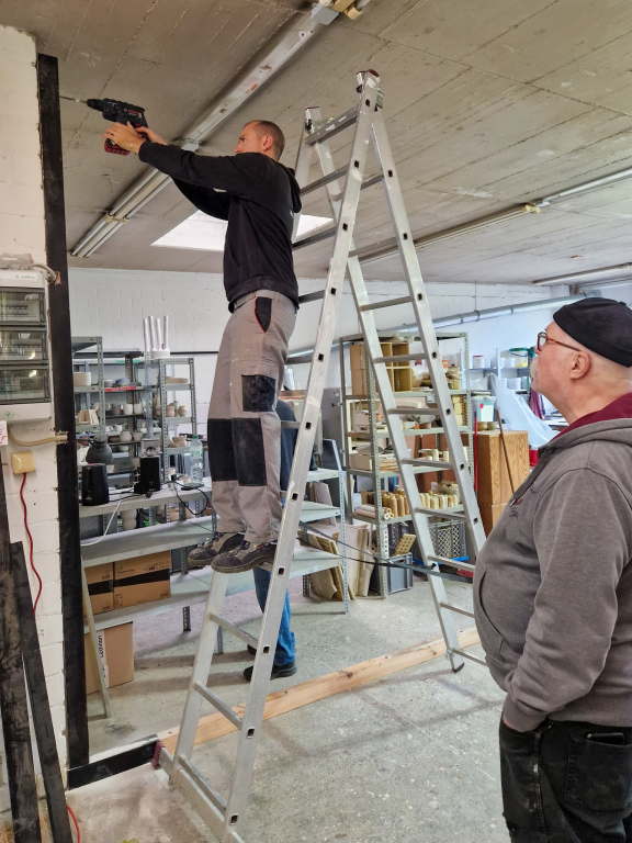 Draußen war es bereits dunkel, als die Arbeiten für die erste Bauphase der Keramik-Trennwand abgeschlossen waren.