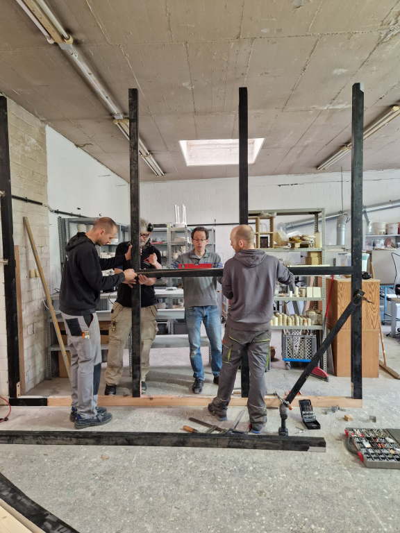 Danach konnten direkt die Bodenmontage und der Aufbau der Stützen beginnen.