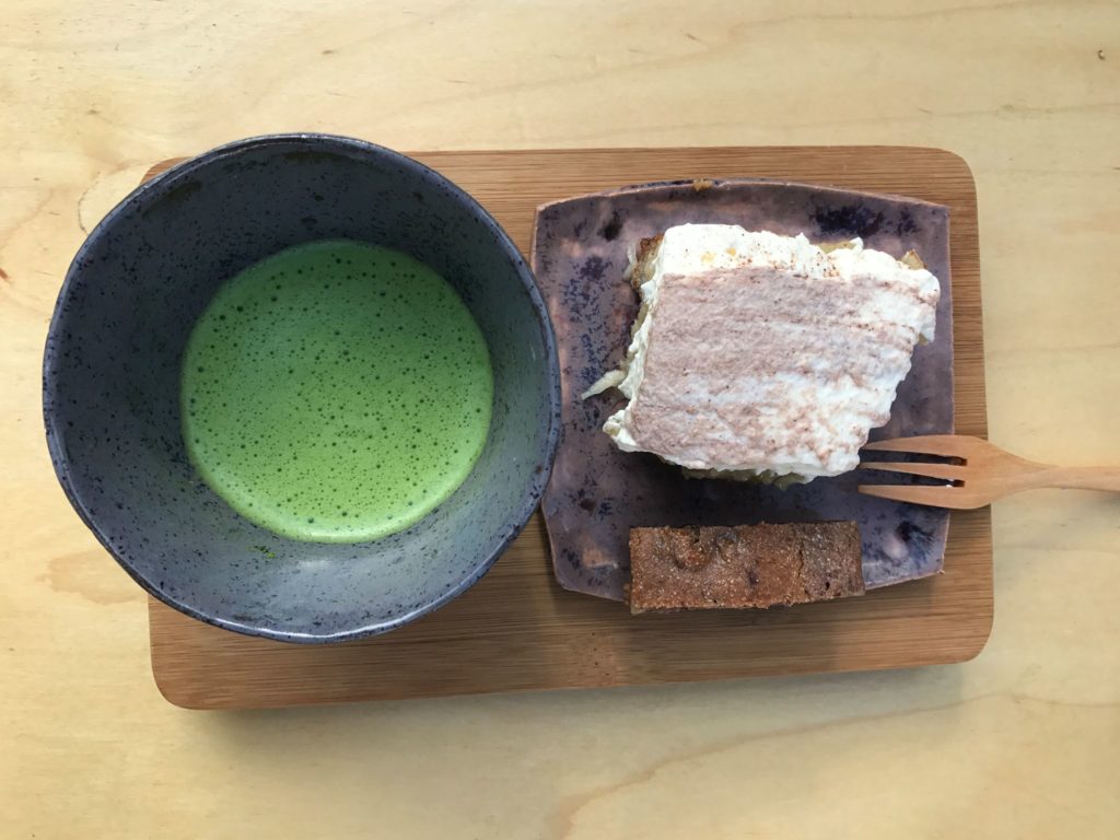 Nebem japanischem Tee und Kaffee wird selbstgebackener Kuchen angeboten – einfach ideal um Wartezeiten zu überbrücken und mit netten Menschen in Kontakt zu kommen.