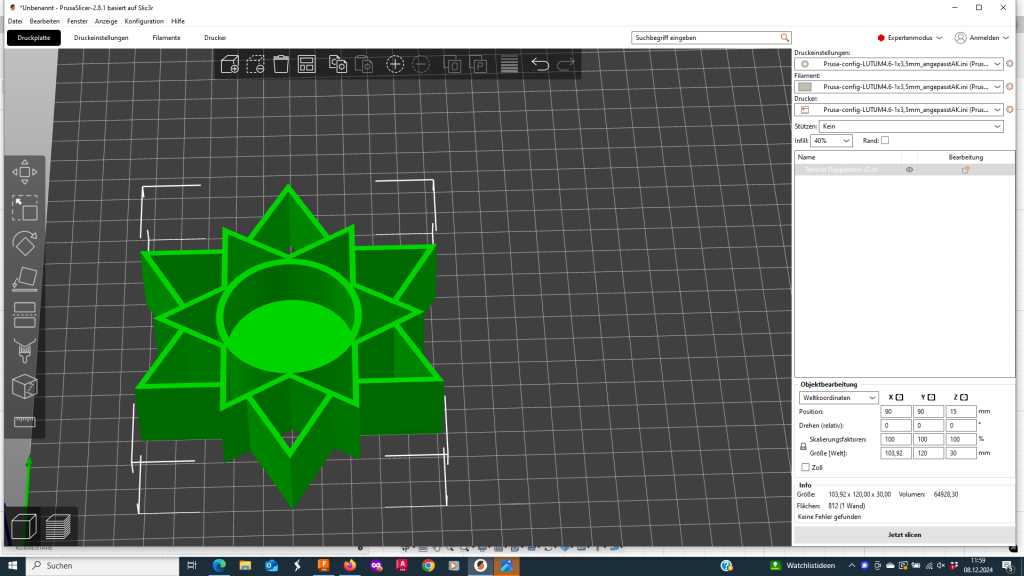Nun wurde der Stern mit dem Tondrucker gefertigt: