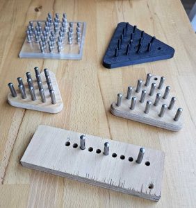 Darunter hab ich noch eine Versuchsreihe mit verschiedenen Lochgrößen gemacht, damit die Pins gut passen.