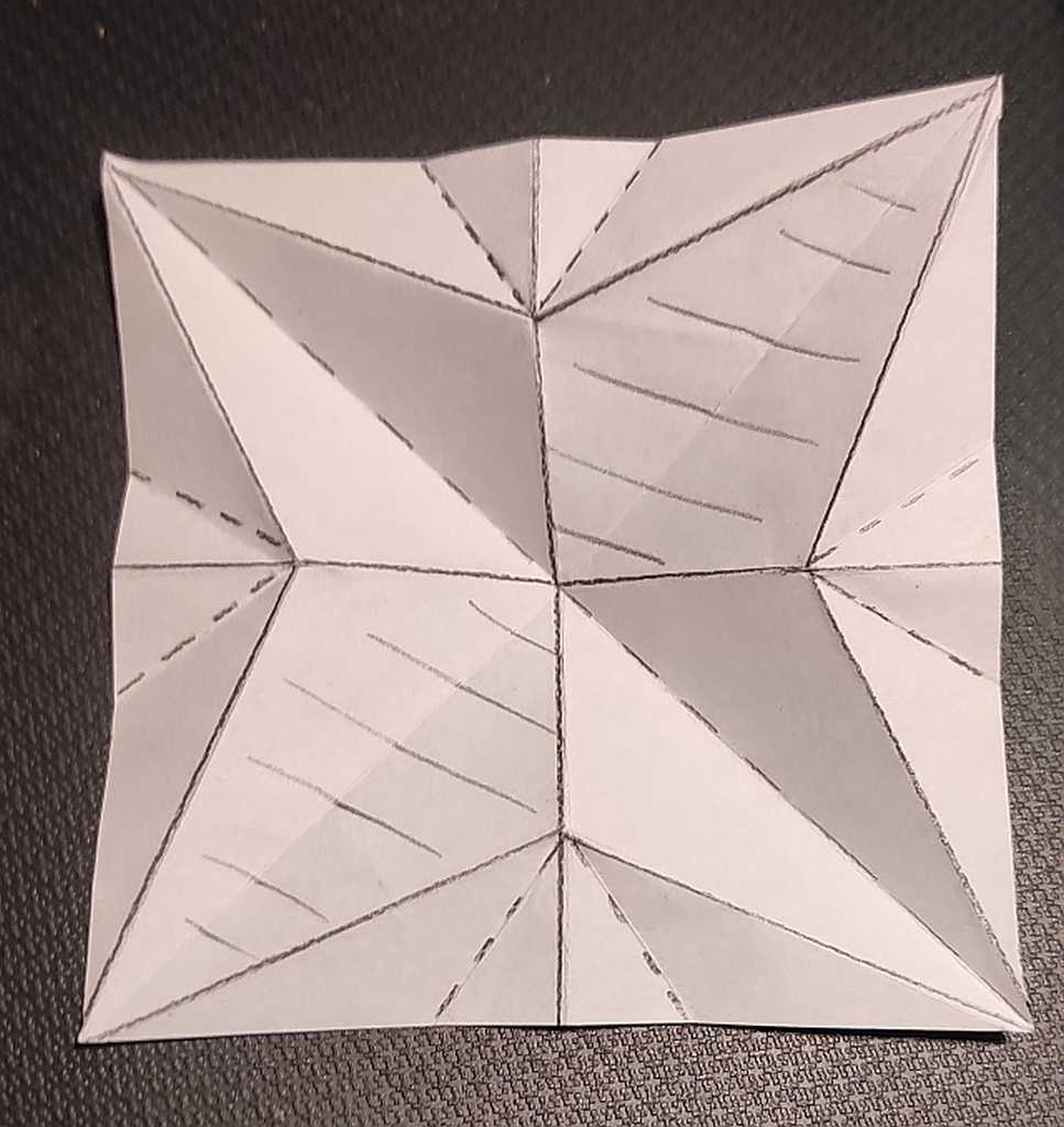 Geklebter modularer Faltstern aus 5 Quadraten von @Antje.