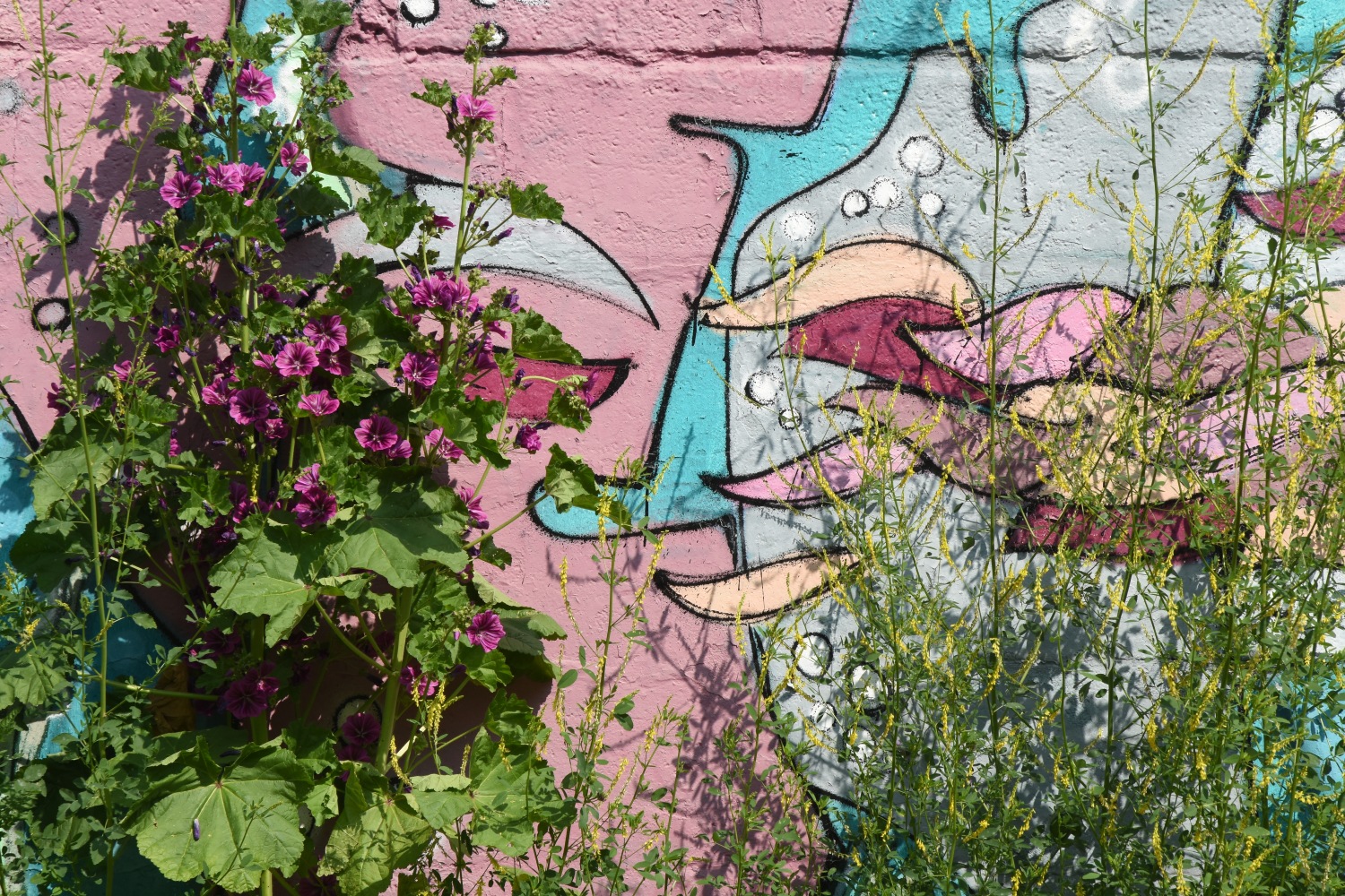 Im vorigen Jahr haben wir auf dem schmalen Streifen zwischen Hallenwand und Parkplätzen Bienenweide-Pflanzen ausgesät. Jetzt blühen Steinklee, Malven und Büschelschön und locken unzählige Bienen und andere Insekten an. Neben Honigbienen sammeln auch unterschiedliche Wildbienen und Hummeln Pollen und Nektar an den bunten Blüten. Während Honigbienen nahezu alle Blüten besuchen, die Nektar und Pollen liefern, sind Wildbienen oftmals hoch spezialisiert und sammeln nur an wenigen Pflanzenarten. Viele Wildbienenarten sind daher in ihrem Bestand gefährdet. Der Gelbe Steinklee steht gerade in voller Blüte – wer genau hinschaut, kann viele verschiedene Bienenarten von ganz kleinen Wildbienen über Honigbienen bis zu den großen Hummeln entdecken. In wenigen Tagen wird die Wegwarte blühen und sicherstellen, dass das Nektar- und Pollenangebot nicht ausgeht.