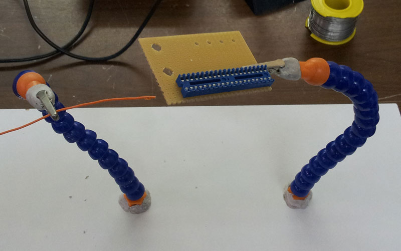 Elektronik-Löten ist eine Arbeit, bei der kleine und kleinste Teile zusammengefügt werden müssen. Hierzu ist eine dritte Hand ein wichtiges Werkzeug. Nur sind die kleinen käuflichen Geräte sperrig, unhandlich, teuer und letztendlich in der Regel nervig.
