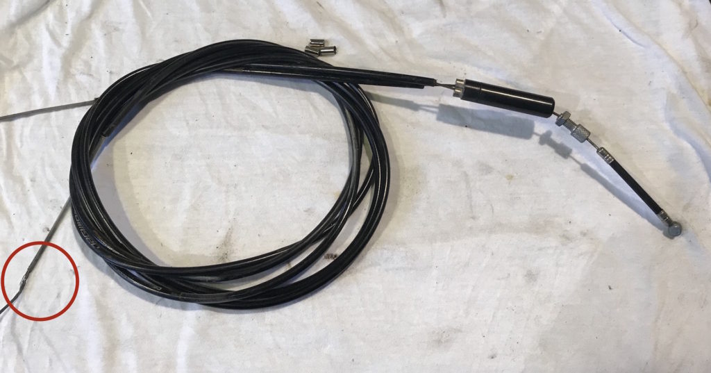 Eigentlich eine tolle Sache, nur dass alle Teile verpresst sind und nicht einzeln ersetzbar. Ein kleiner Defekt, z. B. ein einzelner angerissener Bremszug, erfordert also immer den Austausch des gesamten Zugens inkl. Adapter. Und dummerweise war/ist der Originalbremszug eine Sonder-Konstruktion die exakt so nirgends im Netz zu finden war …