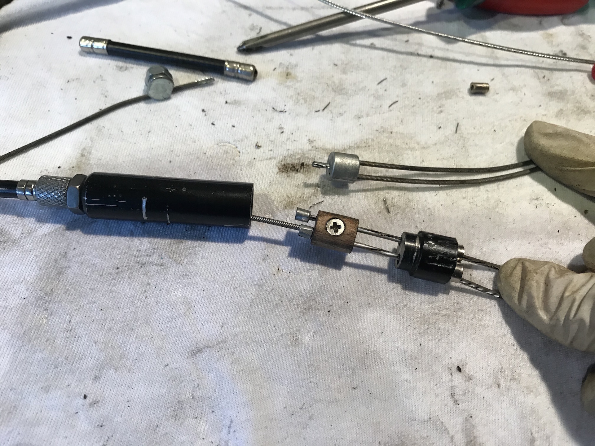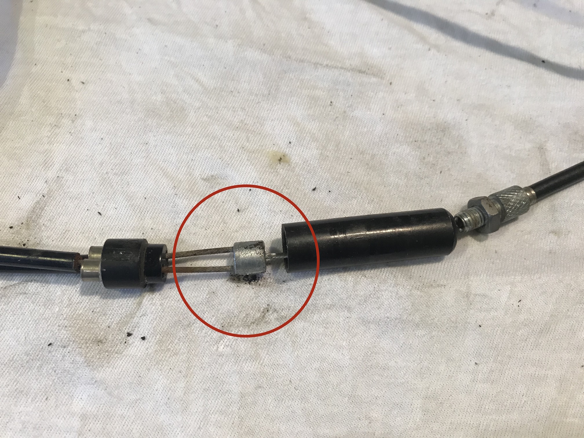 Eigentlich eine tolle Sache, nur dass alle Teile verpresst sind und nicht einzeln ersetzbar. Ein kleiner Defekt, z. B. ein einzelner angerissener Bremszug, erfordert also immer den Austausch des gesamten Zugens inkl. Adapter. Und dummerweise war/ist der Originalbremszug eine Sonder-Konstruktion die exakt so nirgends im Netz zu finden war …