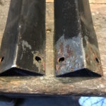 bei der Restaurierung unseres Vereins-Lastenrades geht es wieder mit kleinen Schritten weiter. Heute auf dem Programm: Entrosten und lackieren der vier Winkelbleche, die die zukünftige Holzbox stabilisieren.