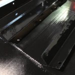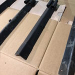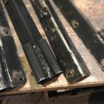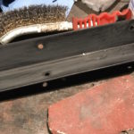 Dann haben wir die Winkelbleche mit der Flex und von Hand ab- und angeschliffen, um den neuen Lack aufzubringen: Schwarz glänzend! Die Winkel sehen frisch lackiert und mit den entrosteten Schrauben montiert wie neu aus.