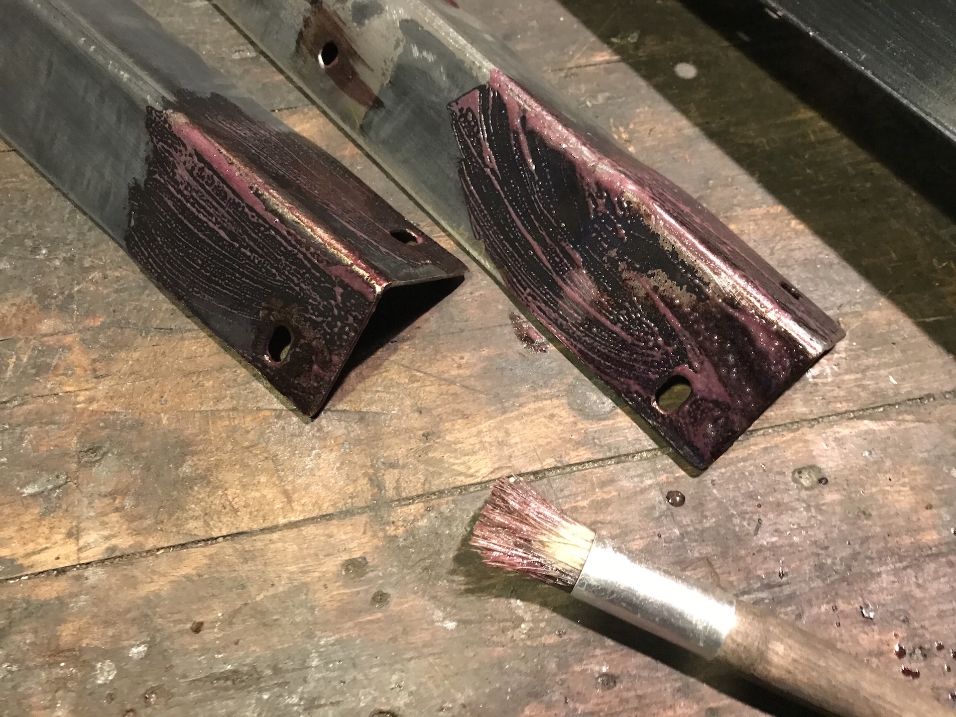 bei der Restaurierung unseres Vereins-Lastenrades geht es wieder mit kleinen Schritten weiter. Heute auf dem Programm: Entrosten und lackieren der vier Winkelbleche, die die zukünftige Holzbox stabilisieren.
