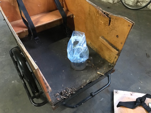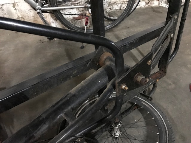 Dank einer netten Spende verfügt der GarageLab e. V. jetzt über ein neues/altes Lastenrad von Cangoo. Leider hat dieses schon ein paar Jahre auf dem Buckel und stand zuletzt viel im Freien. Dementsprechend muss es erst etwas gepflegt und repariert werden, bevor wir es wieder voll belasten können.