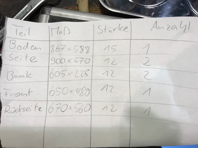 Im ersten Schritt haben wir die den Aufbau vorne demontiert – also die Transportbox und die Bodenplatte – und die Lenkung untersucht.Die einzelnen Teile der Box sind leider stark verwittert, so dass wir uns entschlossen haben, die Box auszumessen und nachzubauen.