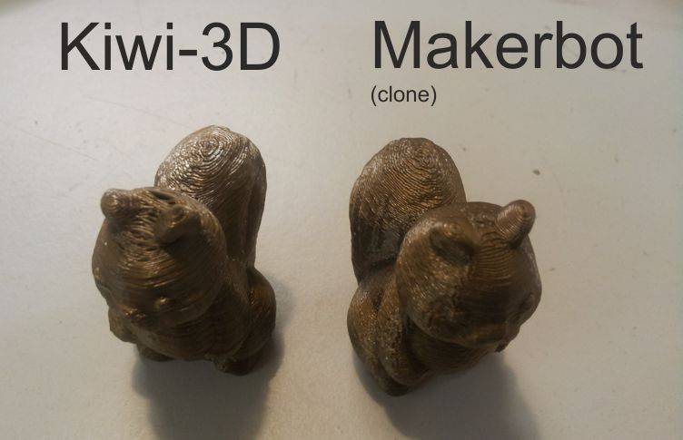 Neben unseren eigenen 3D-Druckern und den Drucker unserer Mitglieder, haben wir die Gelegenheit bekommen, einen neuen Kandidaten im Lab testen zu dürfen. Den Kiwi-3D der italienischen Firma Sharebot. Dieser kleine Drucker stieg mutig in den Ring gegen unseren Ultimaker 2 und auch gegen den – nun etwas betagten – Mendelparts Orca.Ein etwas unfairer Vergleich vielleicht, denn die beiden Kontrahenten kämpfen in einer ganz anderen (Preis-)Gewichtsklasse, denn der Kiwi-3D kostet nur 696 EUR.