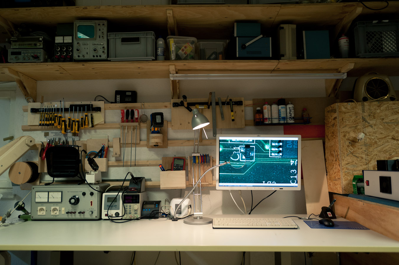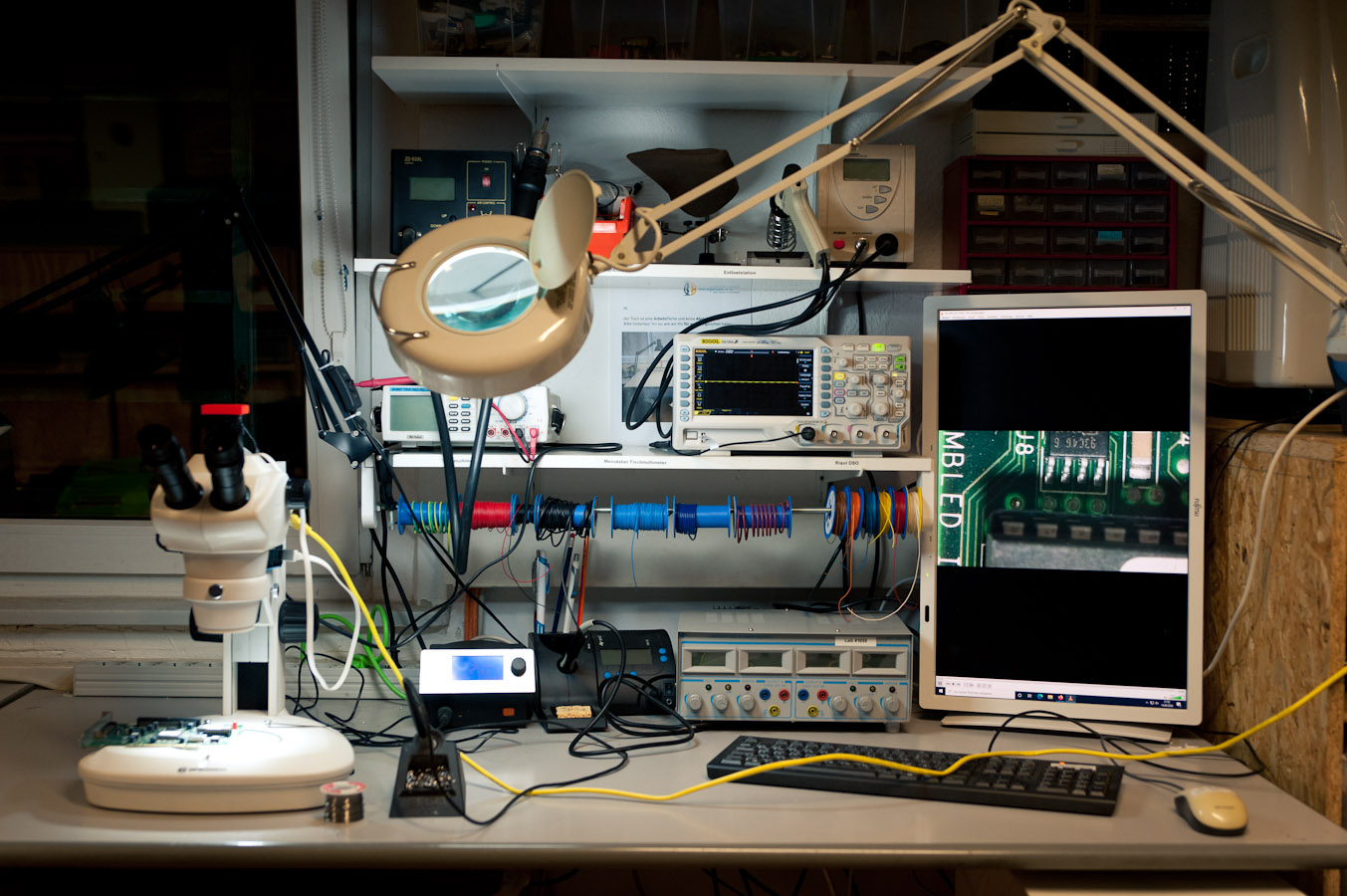 Für deine Elektronikprojekte stehen zwei Arbeitsplätze mit PCs und ausreichend Licht bereit.