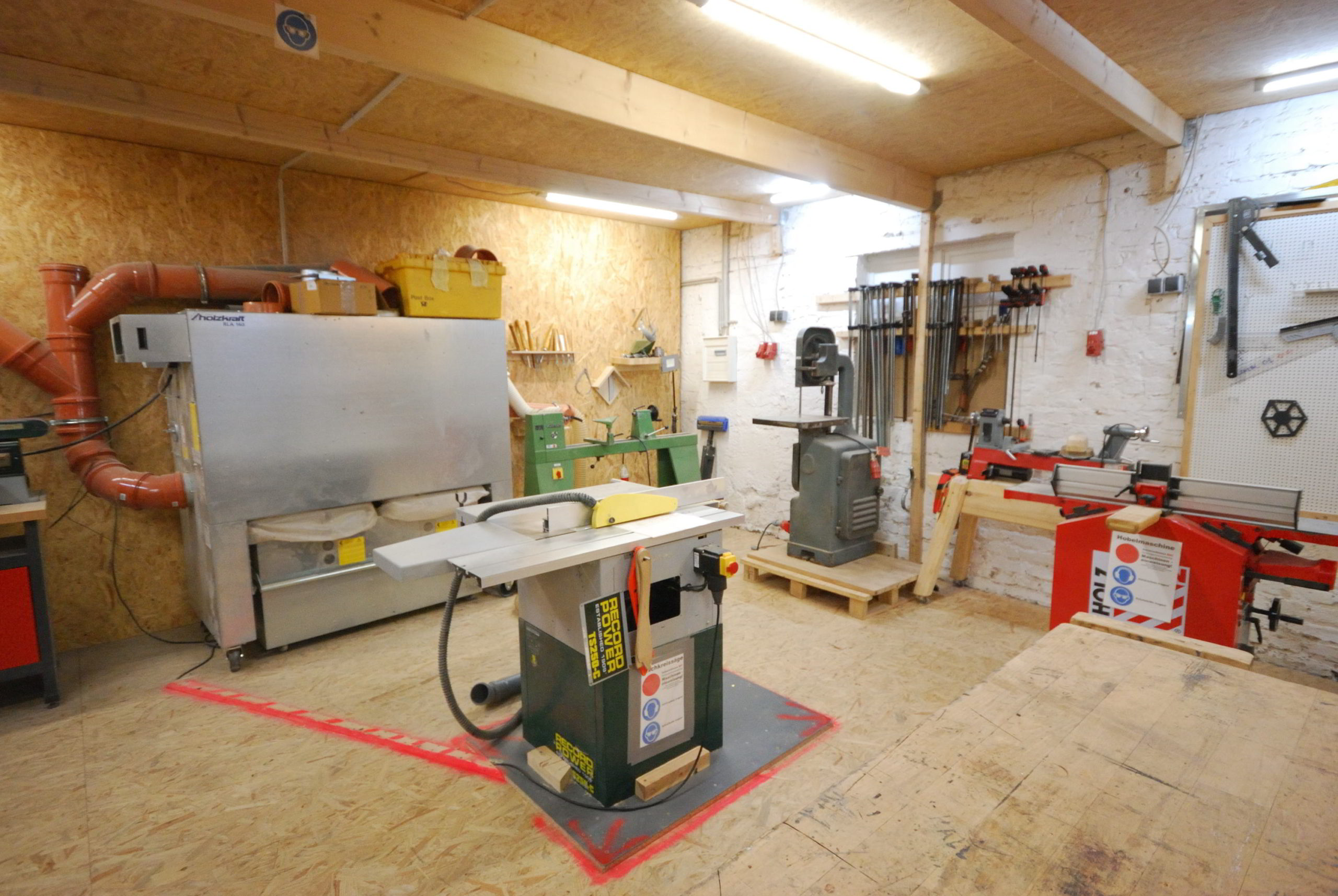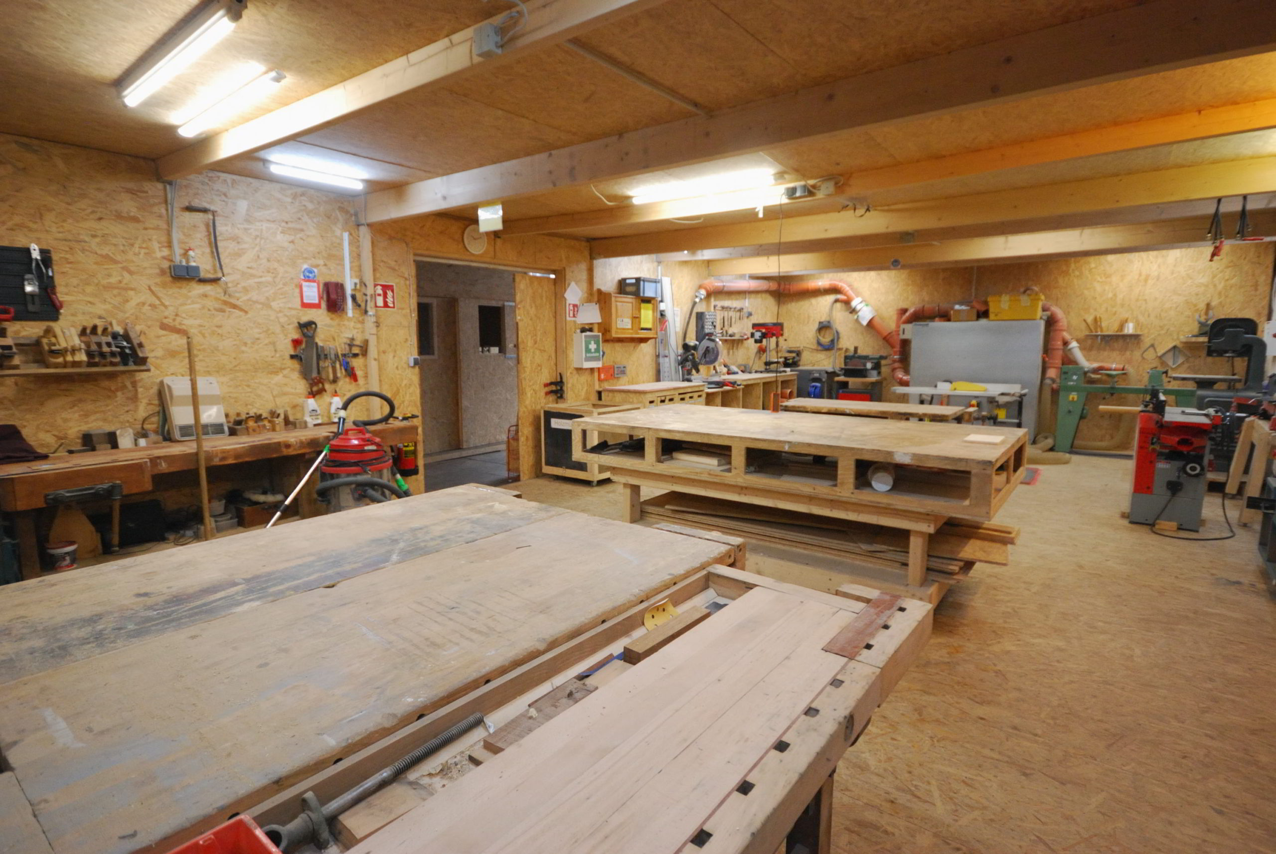 Neben diversen Holzwerkzeugen für die Bearbeitung von Hand, haben wir viele elektrische Maschinen. Dazu zählen u. a