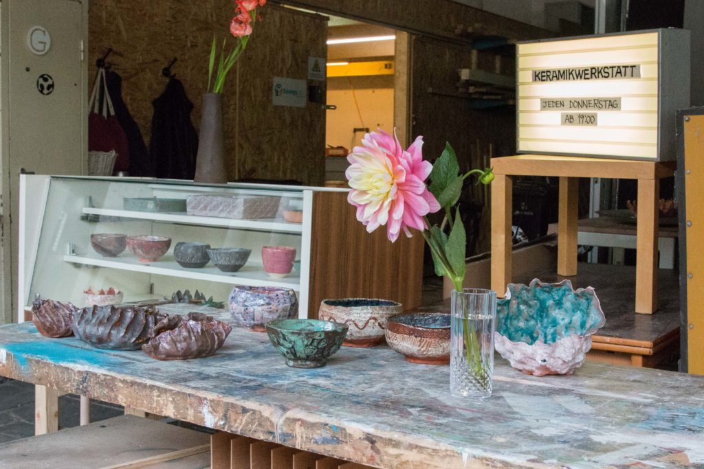 In der Keramikwerkstatt des GarageLab können Einsteiger und Fortgeschrittene von Hand und an der Drehscheibe töpfern. Zu unserer Ausstattung gehören drei Brennöfen, drei Töpferscheiben, Glasuren für Niedrig- und Hochbrand sowie diverse Werkzeuge.