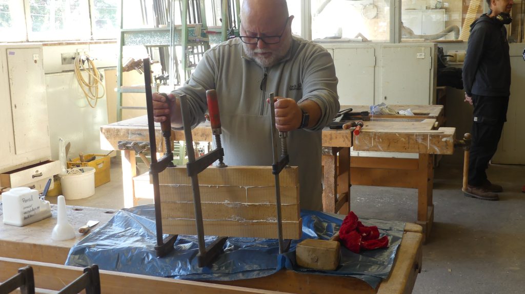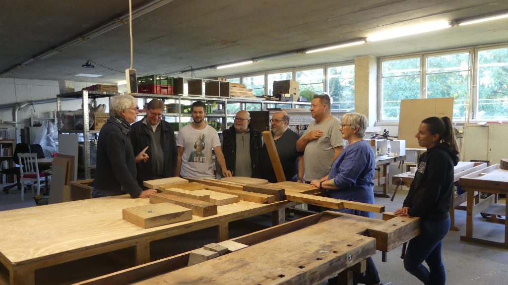 Rolf zeigte unseren Mitgliedern in diesem Workshop, wie man aus Holzresten, Kantholzstücken, Bohlenresten, Brettern von Möbelstücken… mit unseren Maschinen und Möglichkeiten in der Holzwerkstatt gut nutzbare Kopfholz-Schneidebretter anfertigen kann.