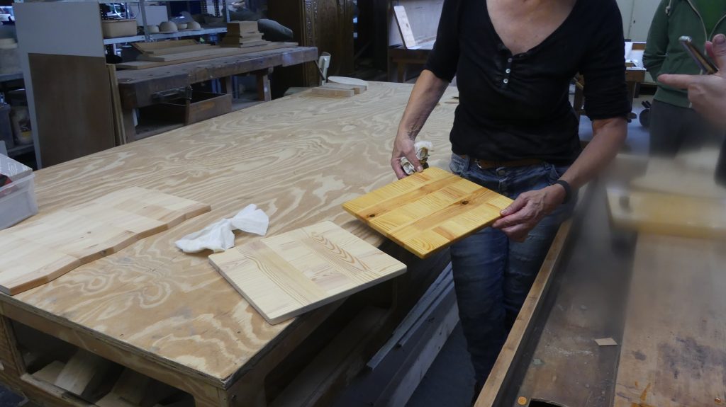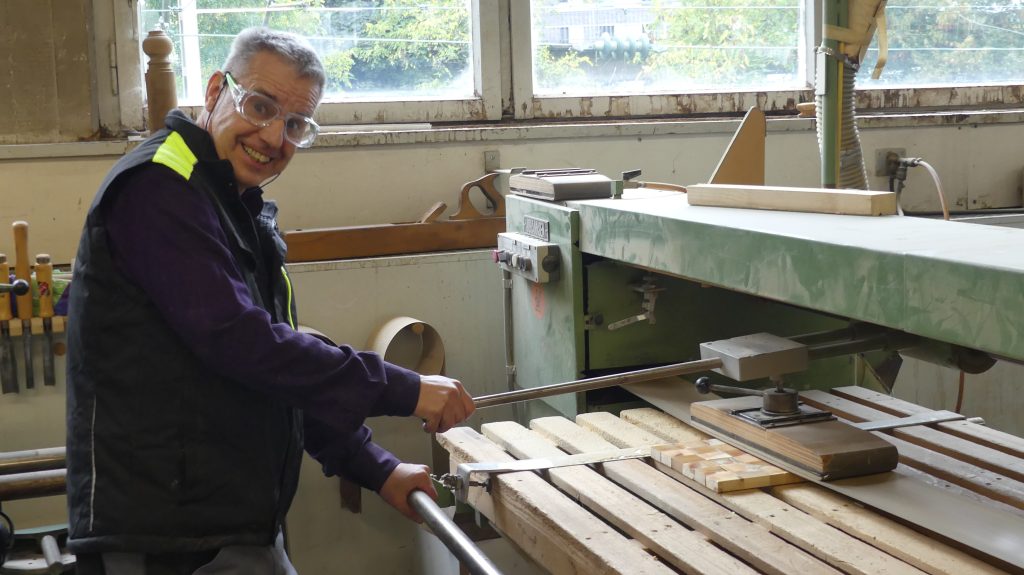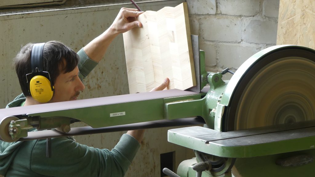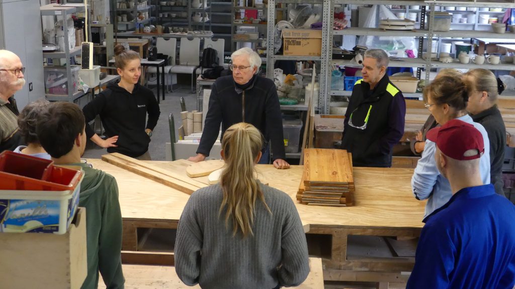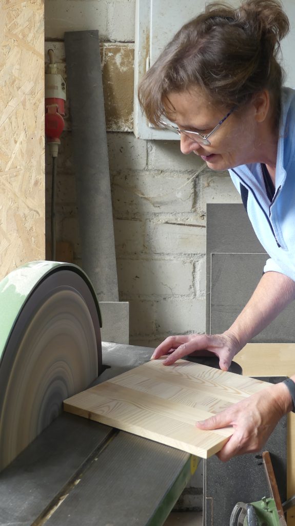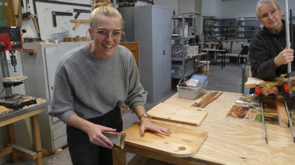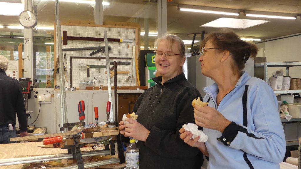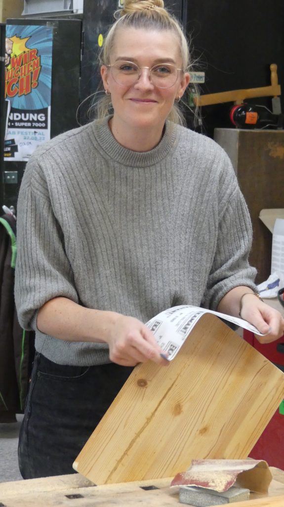 Rolf: „Ich zeige in diesem Workshop, wie man aus Holzresten, Regalbrettern, Leisten… mit unseren Maschinen gut nutzbare Servierbretter für das Sonntagsfrühstück herstellen kann.“