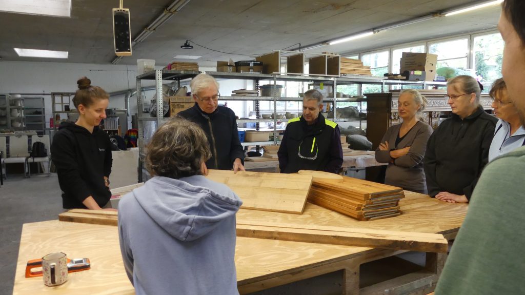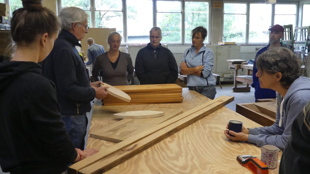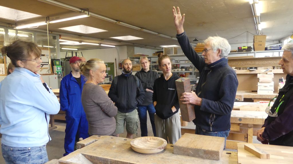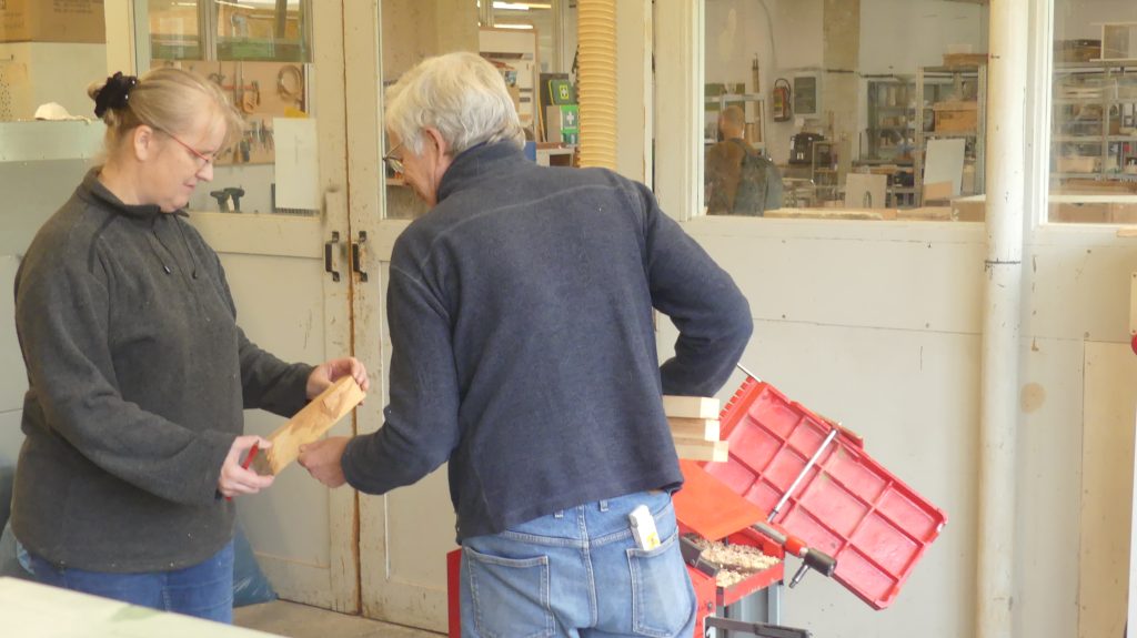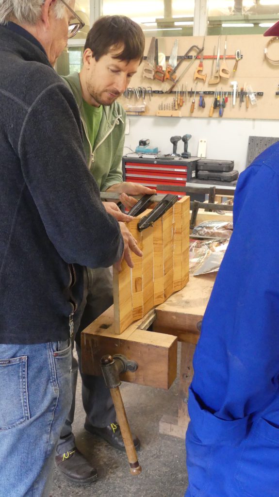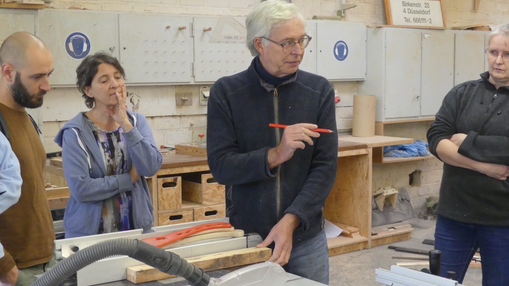 Zunächst gab es wieder einen Exkurs in die Holzkunde, bei dem Rolf vermittelte, was die jeweils besonderen Eigenschaften der verschiedenen Holzsorten sind und für welche Anwendungen sie sich eignen.