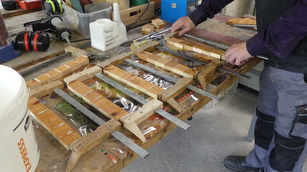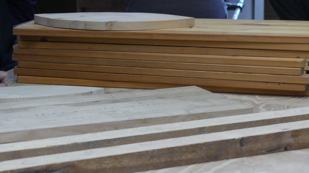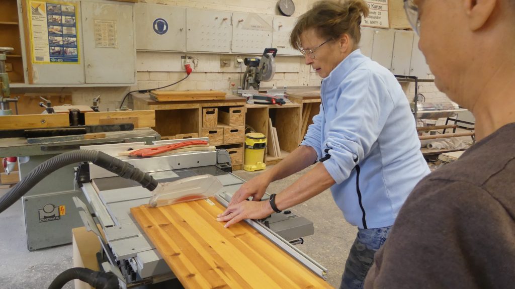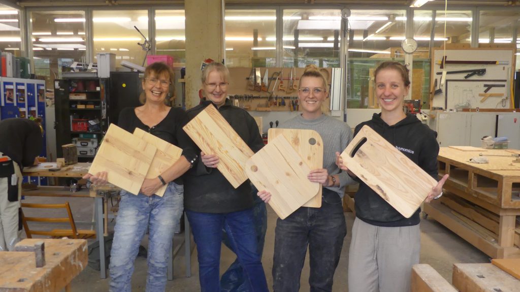 Es wurde gehobelt und gesägt, bis alle fertigen Einzelteile der unterschiedlichen Brettchen für den nächsten Arbeitsschritt bereit waren.