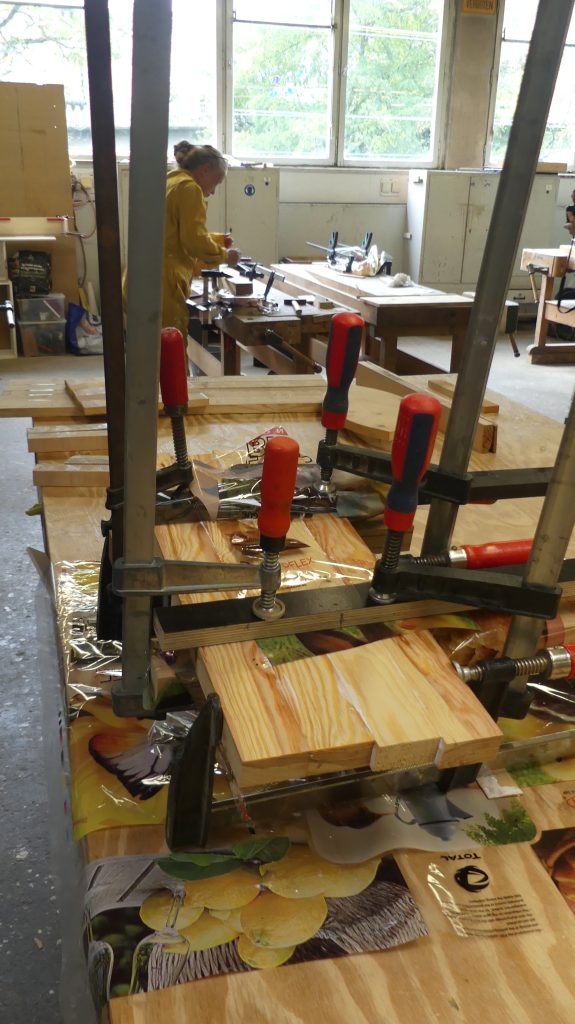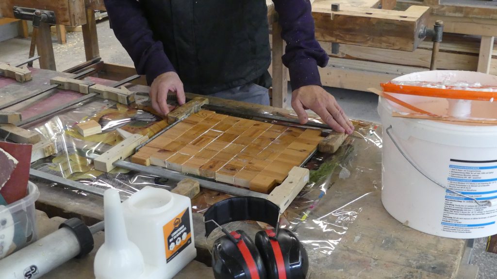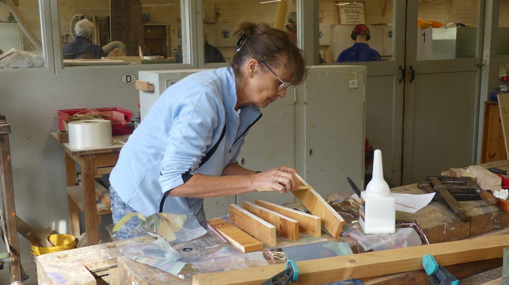 Also wurden die Teile nun zu den fast fertigen Brettchen verleimt, und während der Wartezeit, die der Leim braucht, um ausreichende Festigkeit zu erreichen, hatte sogar der Kursleiter Zeit für ein klein wenig Erholung.