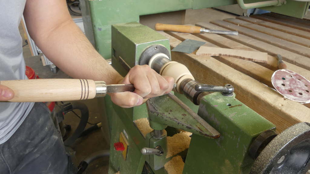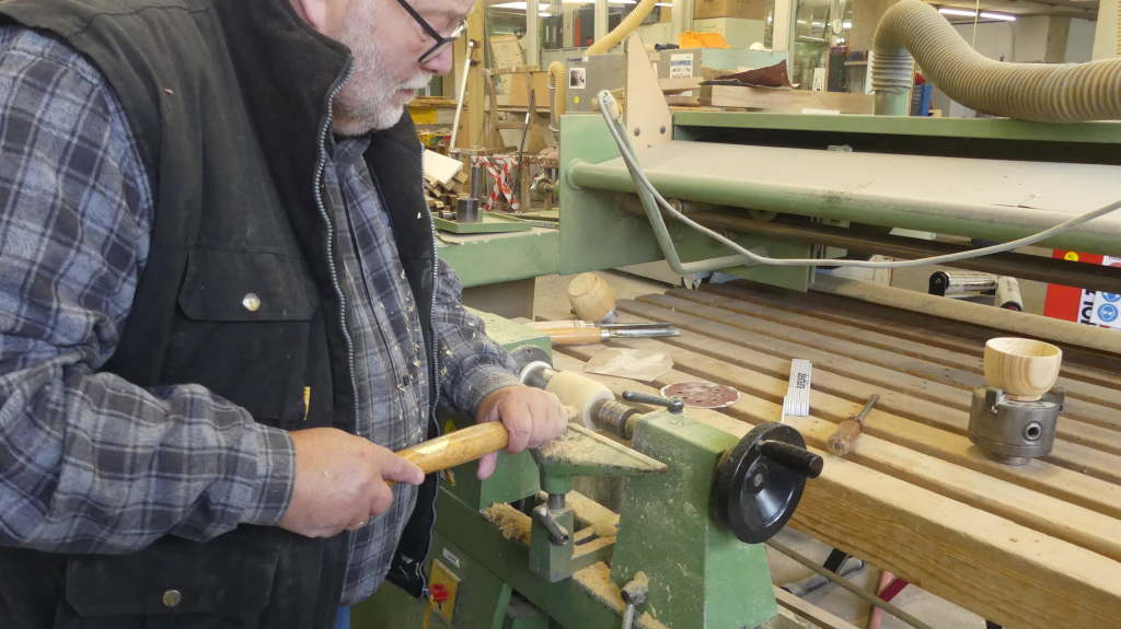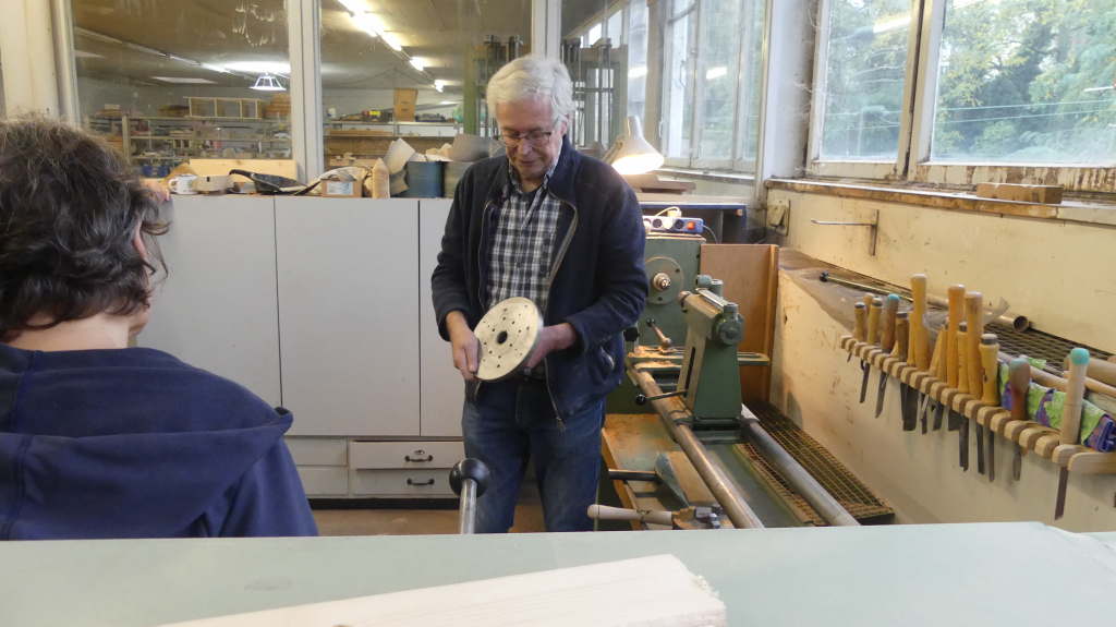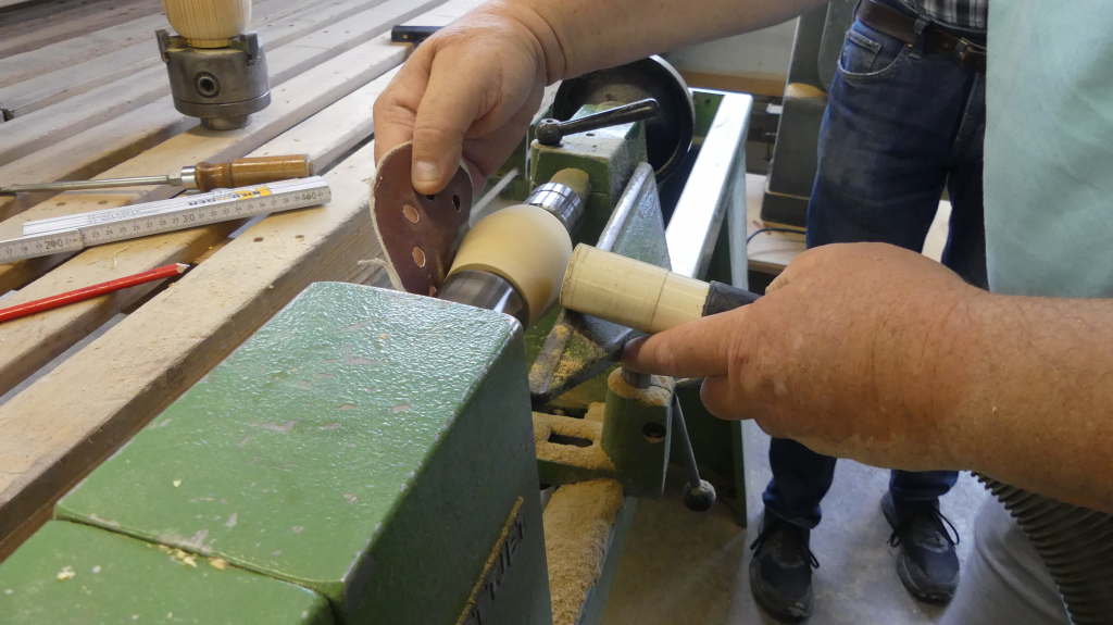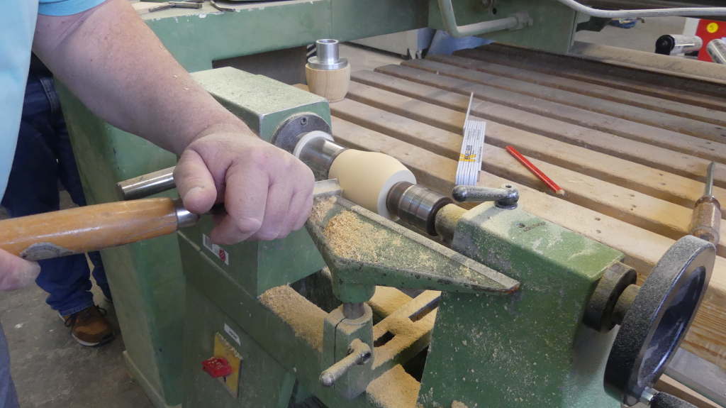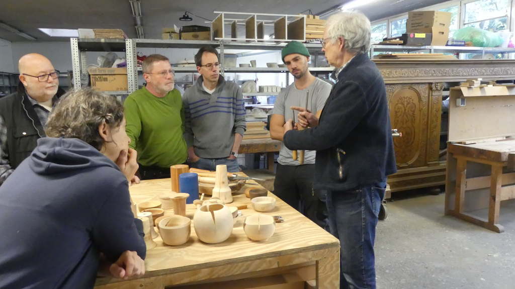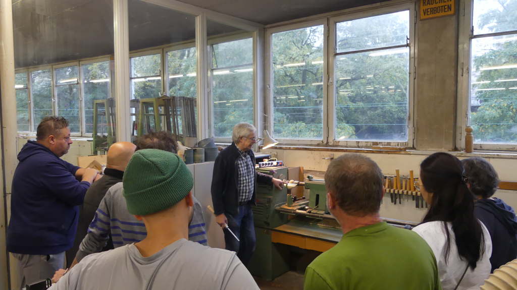 Es müssen ja auch immer die Werkstücke vorbereitet werden, der erforderliche Umgang mit den Spannvorrichtungen erlernt werden, Drechseleisen geschärft werden.