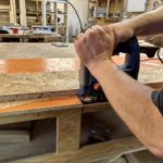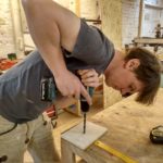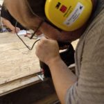 Neben den Grundlagen der Arbeitssicherheit und des Unfallschutzes vermittelte Felix routiniert die korrekte und sichere Handhabung der Stichsäge und die Anwendung des Akkuschraubers beim Vorbohren und Schrauben.