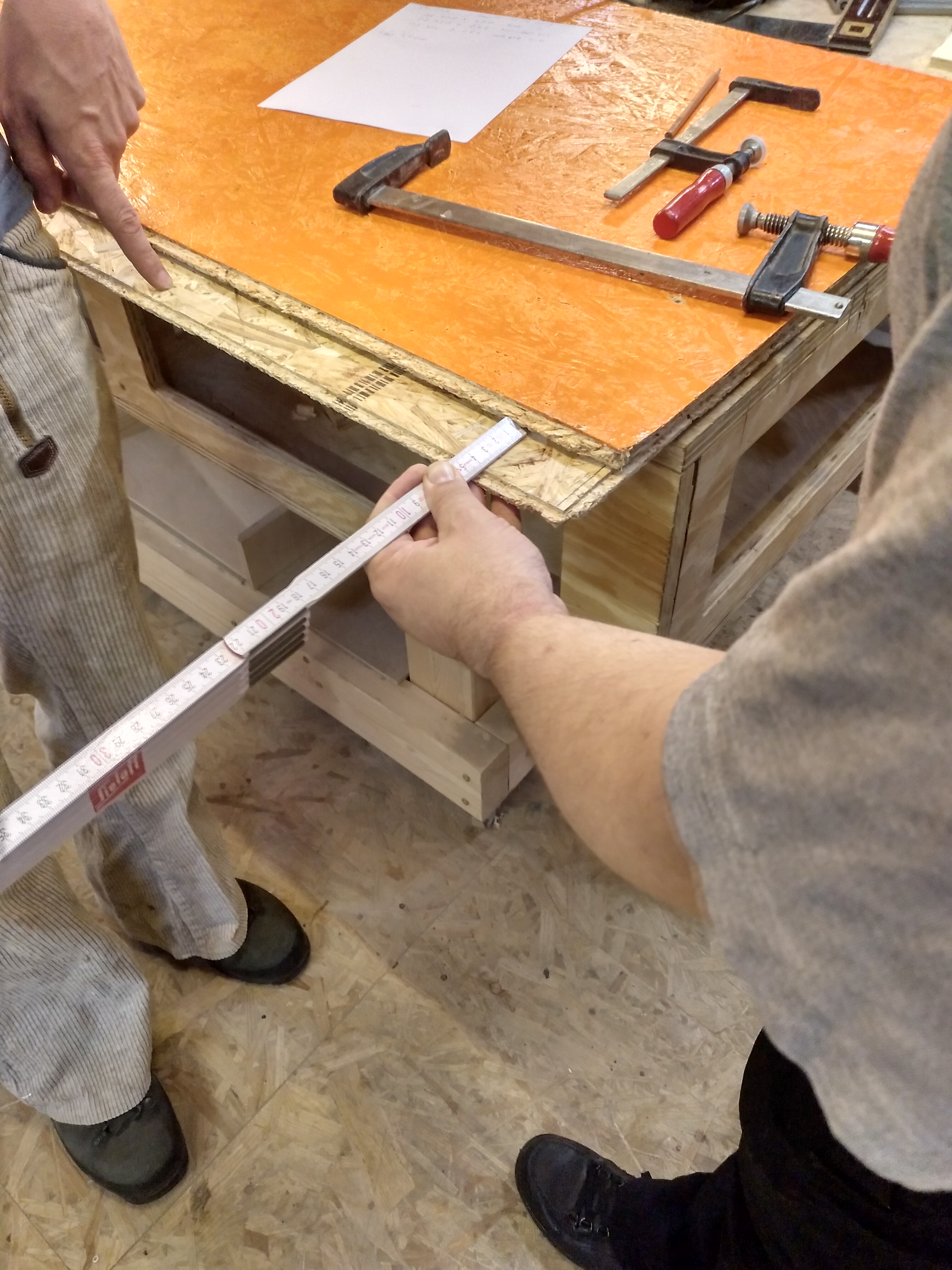 Die Kursteilnehmer haben jetzt das Rüstzeug, ein einfaches Möbel zu planen und zu bauen. Durch eigenhändige Ausführung der Fertigungsschritte wurden diese verinnerlicht; das nächste Möbel kann selbstständig gebaut werden.