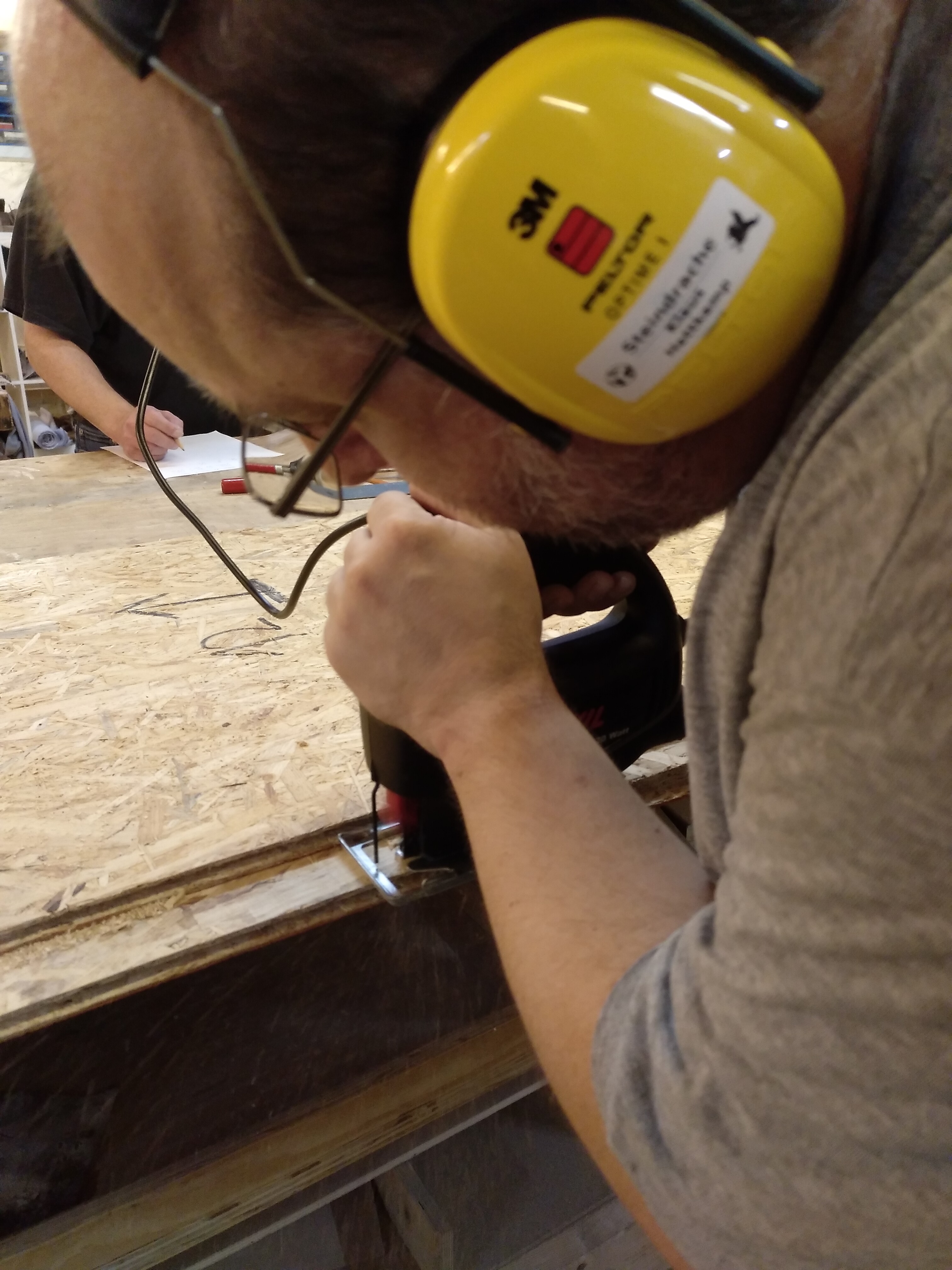 Am 11.8.2019 kam zum ersten Mal die halbtägige Veranstaltung “Einsteigerkurs zu Stichsäge und Akkuschrauber/bohrer” zustande, um den sicheren Umgang mit Stichsäge und Akkuschrauber/Handbohrer zu erlernen.