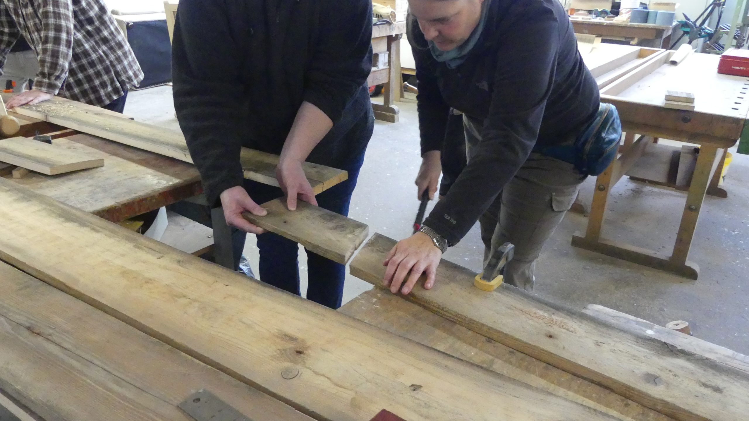 Das Wichtigste: Es hat allen viel Spaß gemacht, mit Holz zu arbeiten, das nicht zuvor auf den Millimeter zugesägt wurde und ein deutliches Eigenleben hatte, dem man sich anpassen musste. Vor allem das Arbeiten mit den Handwerkzeugen war für alle eine wichtige und bereichernde Erfahrung.