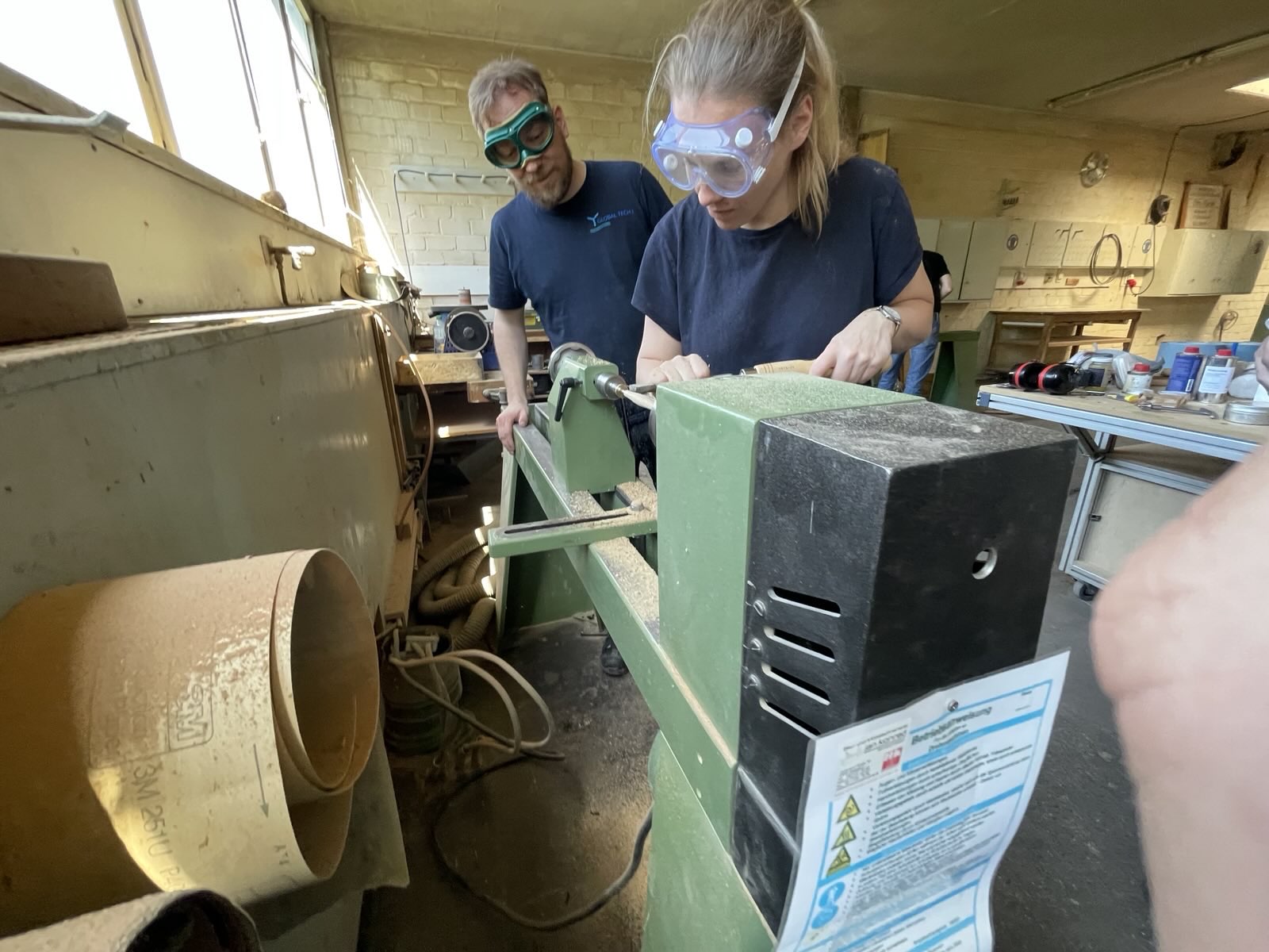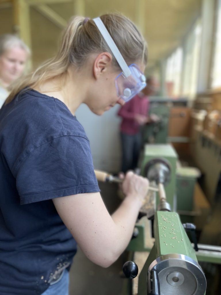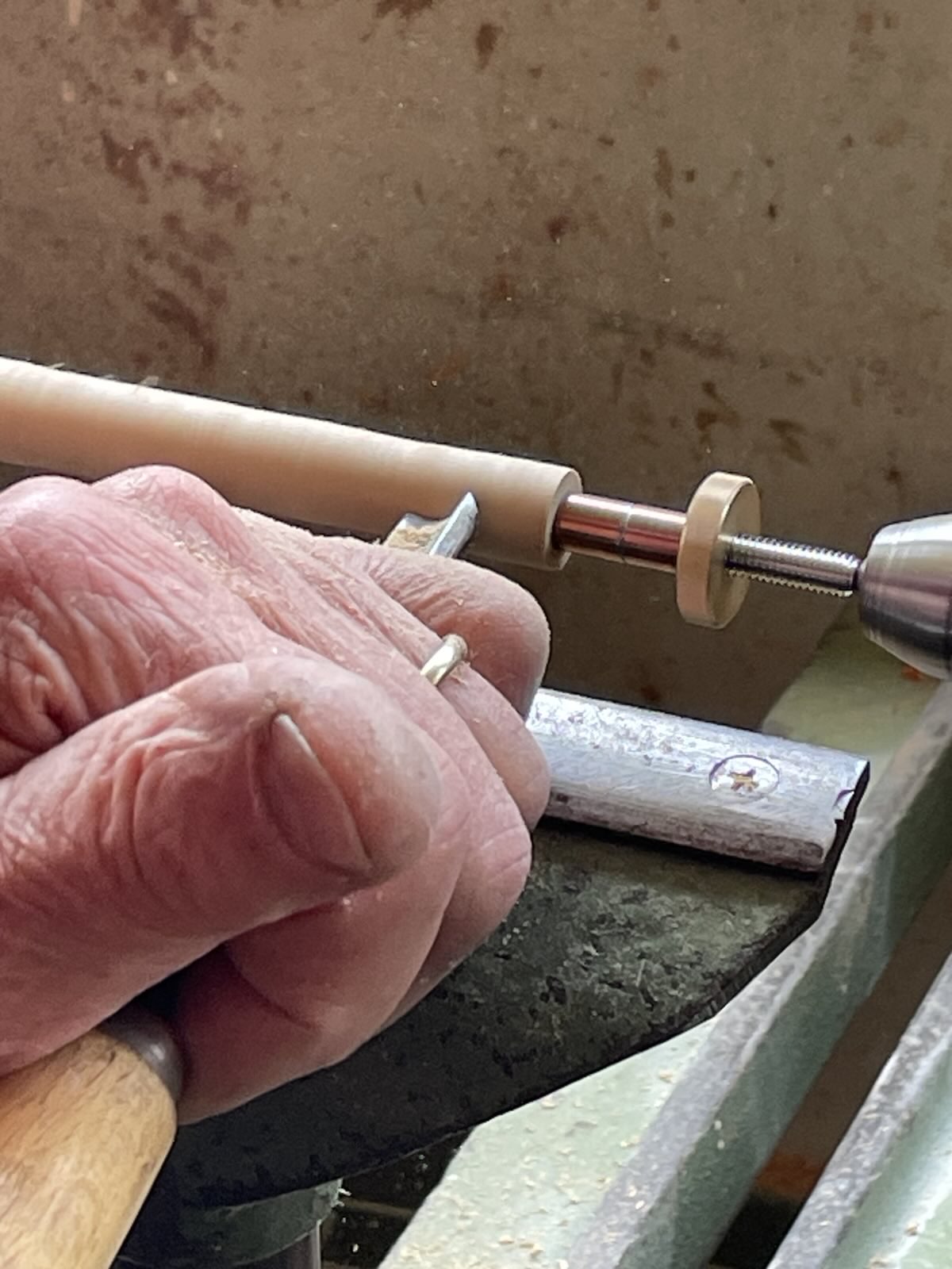 Nach einem Drechsel-Workshop, an dem @TobiasB teilnahm, sieht man ihn regelmäßig in der Werkstatt, wo er Stifte drechselt.